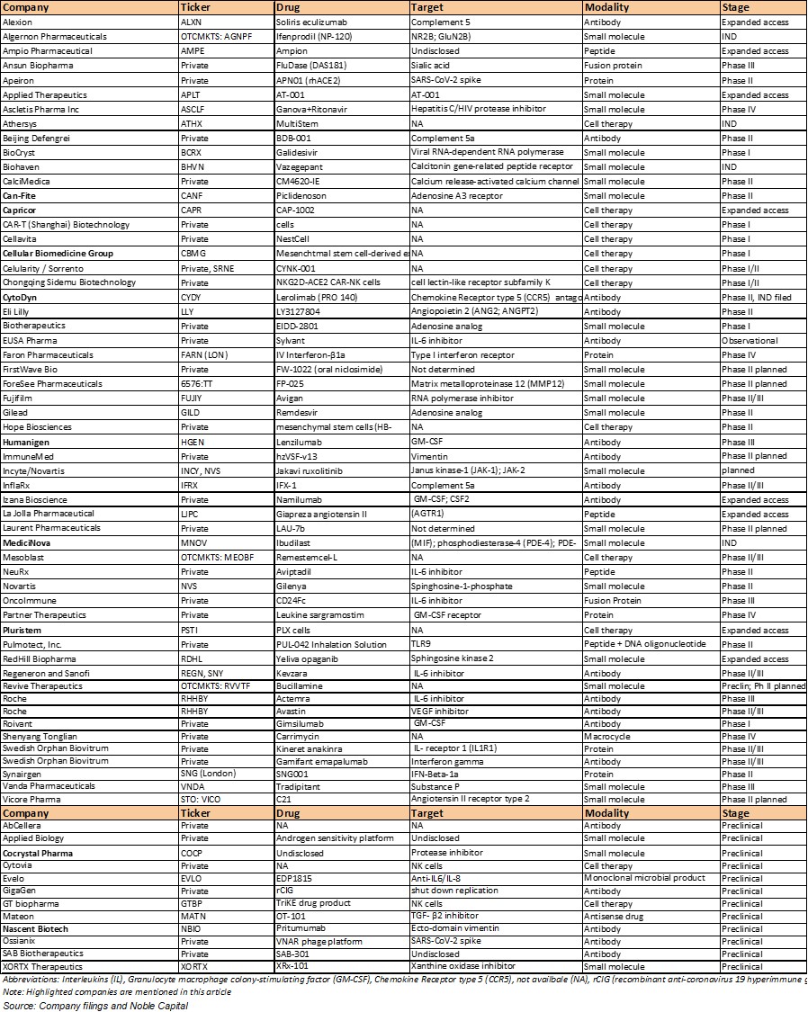 Exhibit 1. Companies Developing Coronavirus Treatment