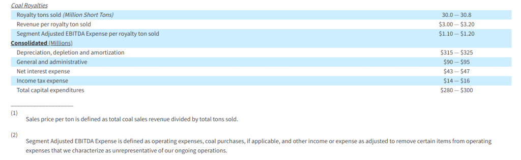 ARLP is providing the following guidance for the full year ending December 31, 2026: