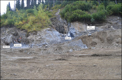 - West Vein: Located 12 metres from the Mid-West Vein. The vein is approximately 3 metres wide and exposed over 6 metres.