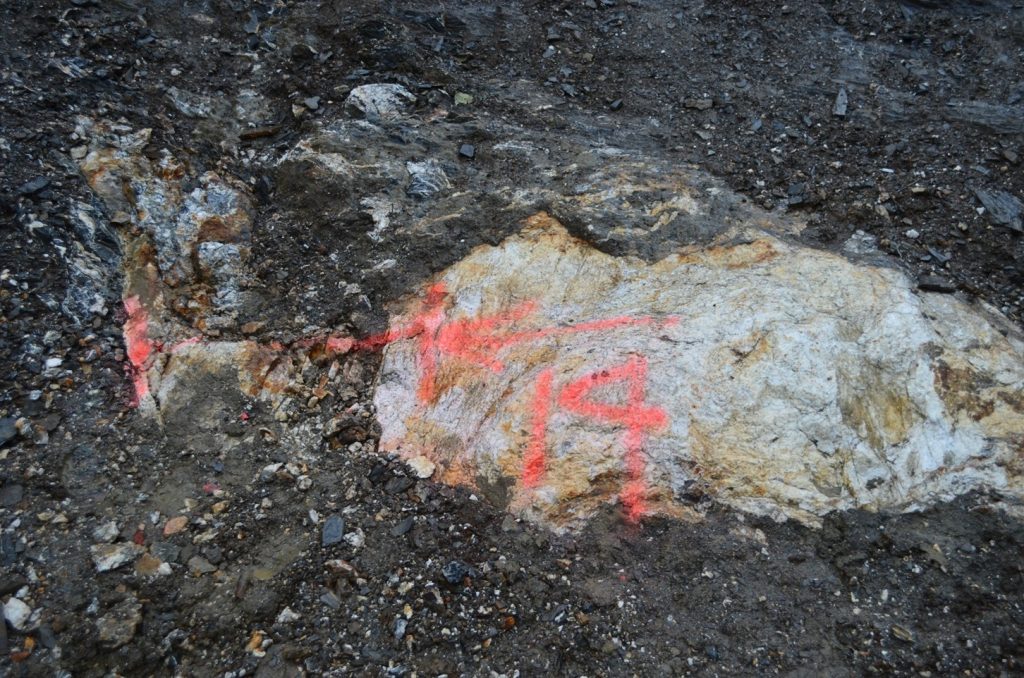 - 16 Vein: This historically known vein is located approximately 20 metres from the South Pit Vein. Chip samples and grab samples were taken from the vein during the October 14, 2020 due diligence process.