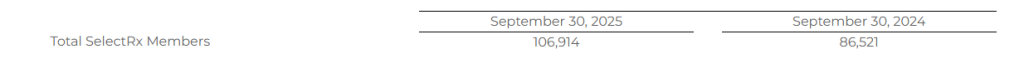 The total number of SelectRx members increased by 24% as of September 30, 2025, compared to September 30, 2024, due to our strategy to grow SelectRx membership.